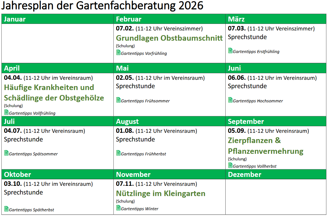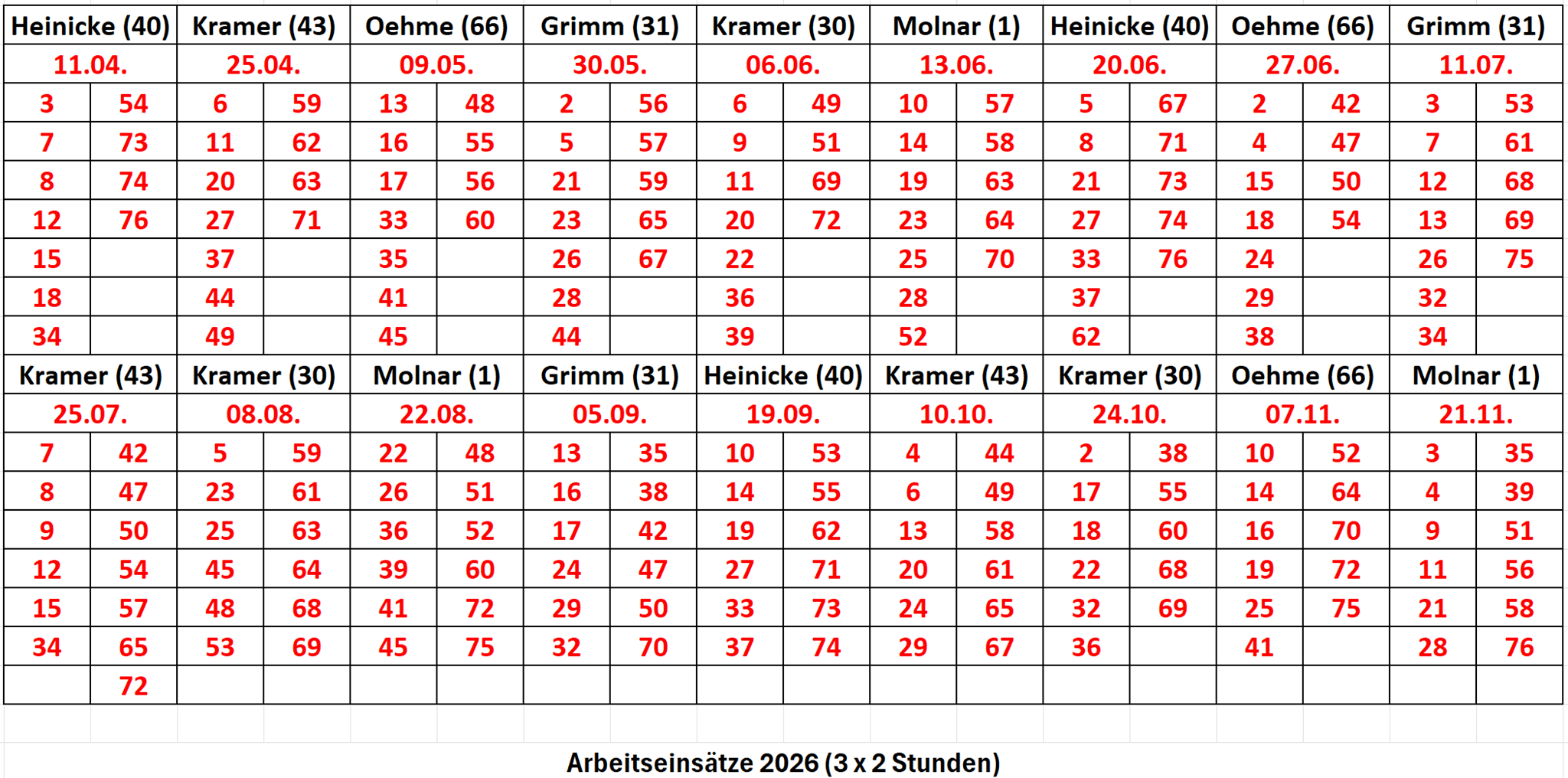 | 24.10.2026 | 09:00 Uhr | Ablesung der Wasseruhren und Abstellung Gartenwasser | KGV |