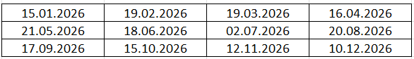 Der Vorstand hat an folgenden Tagen ab 17:00 Uhr Vorstandssitzung
