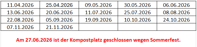 Öffnungszeiten Kompostplatz 09:00 Uhr - 11:00 Uhr